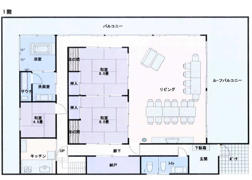 ③ 2階の中心は8畳と6畳の和室あり、1つの大部屋としても可能。